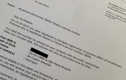 Saí de lá com o papel provisório de registro, mas que já tem o número do meu BSN! Em até 4 semanas deveria ter chegado por correio o documento oficial, mas ele nunca chegou. De qualquer forma, esse provisório já foi suficiente para dar continuidade a todo o processo, e é o que eu continuo usando até hoje.