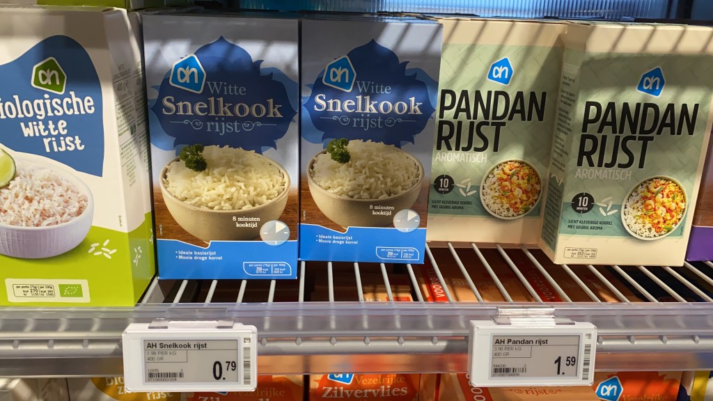 O que eu mais estranhei nas minhas primeiras idas ao mercado aqui é o ritmo acelerado dos holandeses fazendo compras. Eles entram, já sabem exatamente em qual corredor ir pra pegar aqueles produtos que já sabem que querem, e em questão de 5-10 minutos já estão no self check out (caixa self-service) pagando as compras. É tudo muito rápido, eu fico até atordoado.